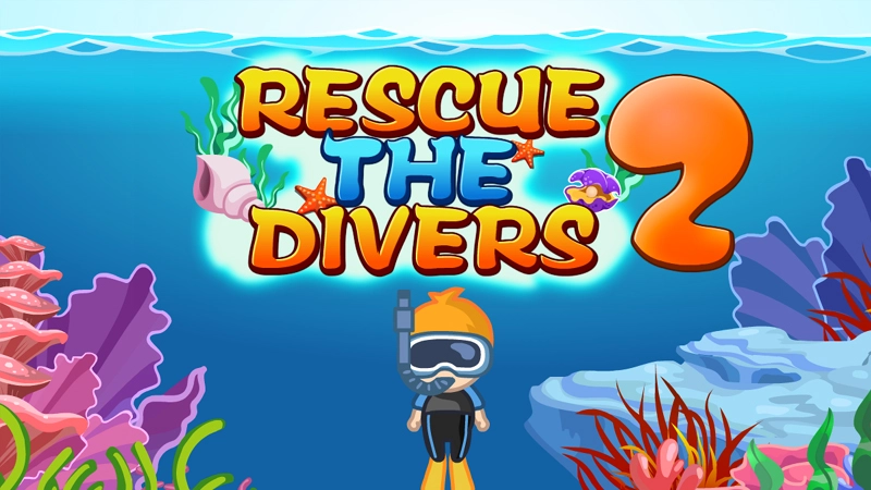 Rescue all the divers by removing the bricks between the divers and the surface. Click on a group of 3 or more of the same bricks to remove it.